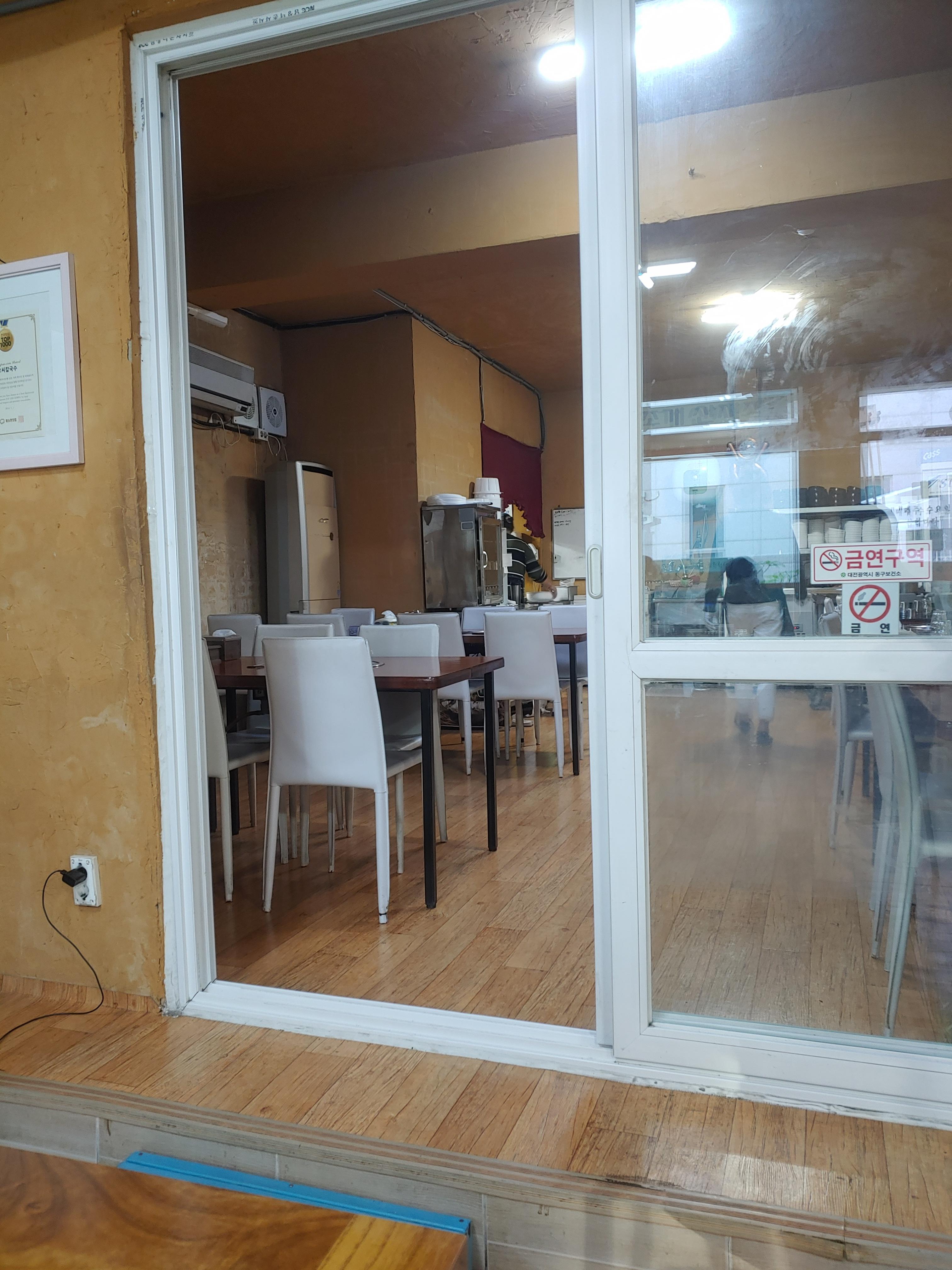 식당은 위와 같이 생겼다. 사진 기준으로 좌측에는 시장으로 들어갈 수 있고, 사진에는 보이지 않지만 우측에는 빌딩공사를 하고 있는 중이다.