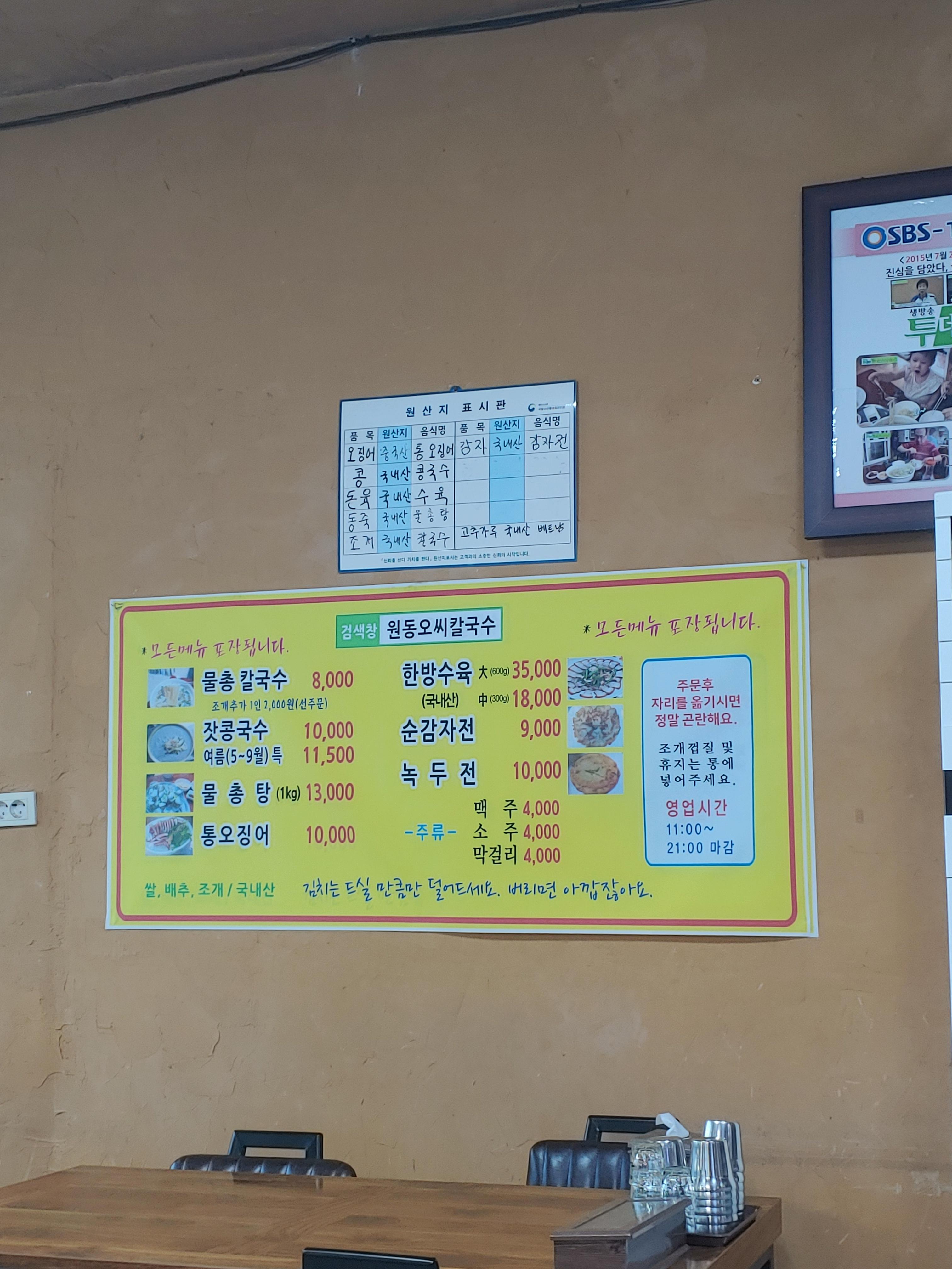 메뉴와 가격표다. 칼국수 외에도 다른 메뉴들도 선보이고 있는데, 내가 먹었을 때는 모두 칼국수만 먹었다.